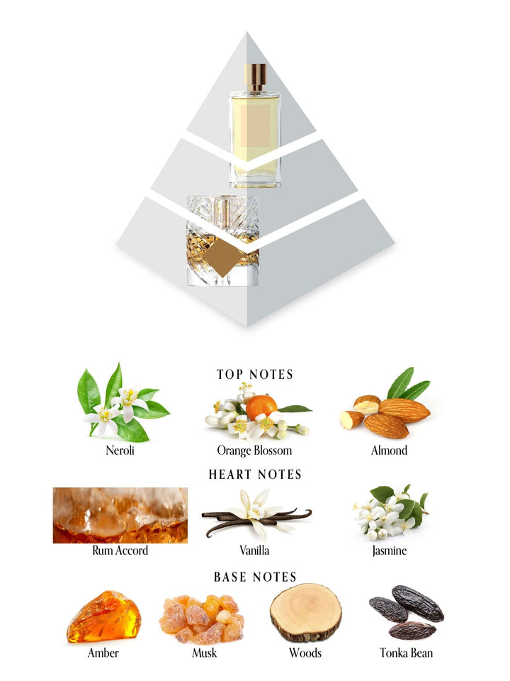 يفتتح العطر بنفحات زهرية ناعمة متشابكة مع العنبر الدافئ، يتبعها بسرعة لمحات من الرم، والفانيليا، والأخشاب المحمصة. إنه عطر حسي وجذاب يلفك في عناق مريح ولكنه فاخر .